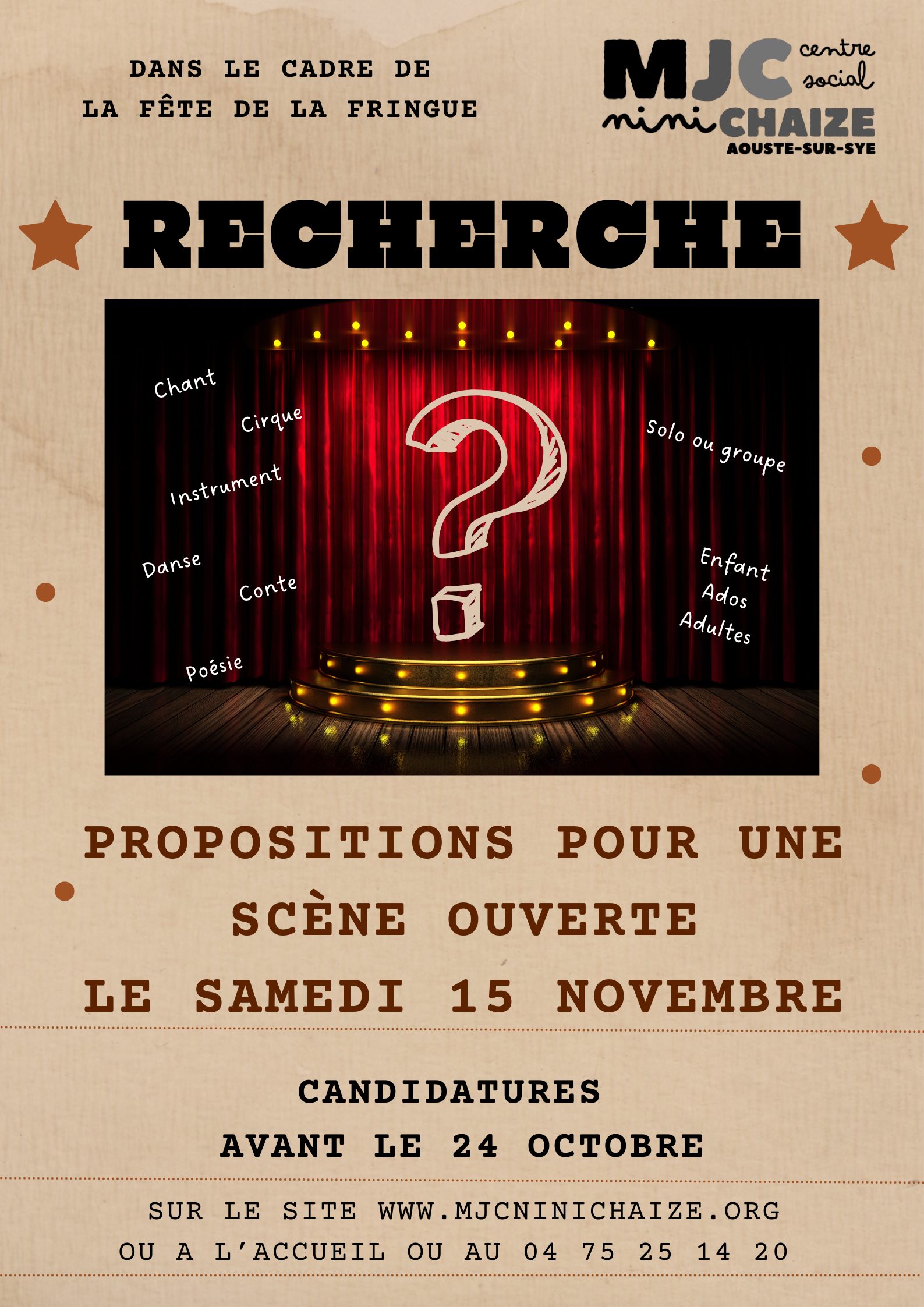 Vous souhaitez participer à la prochaine scène ouverte du samedi 15 novembre ?