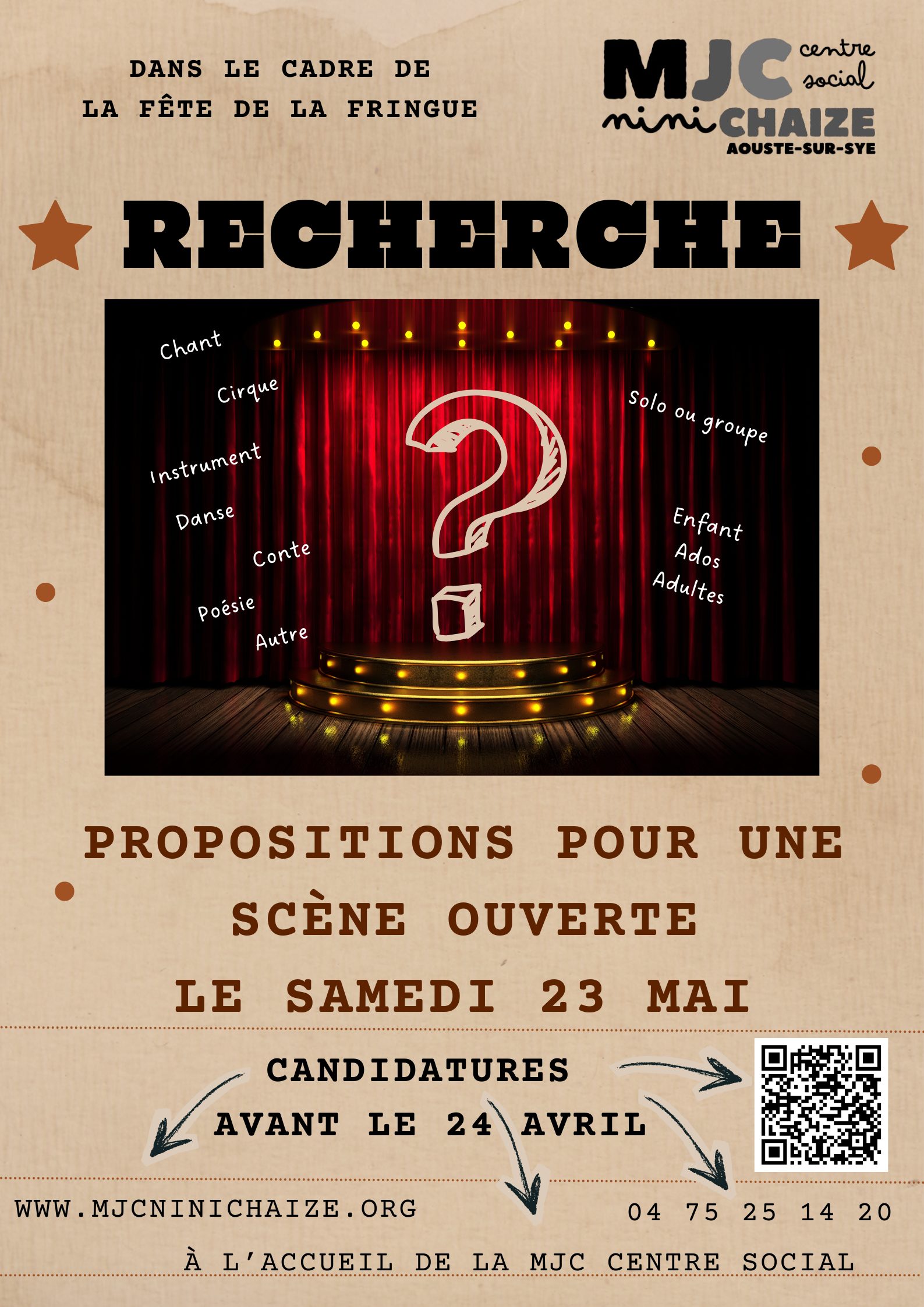 Dans le cadre de la Fête de la fringue, la MJC Centre social organise une scène ouverte le samedi 23 mai de 17h30 à 19h.