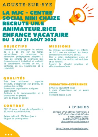 Offre d’emploi animateur.ice enfance