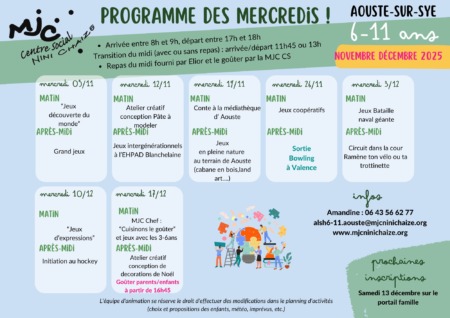 Télécharger le programme des mercredis de novembre et décembre 6-11 ans Aouste